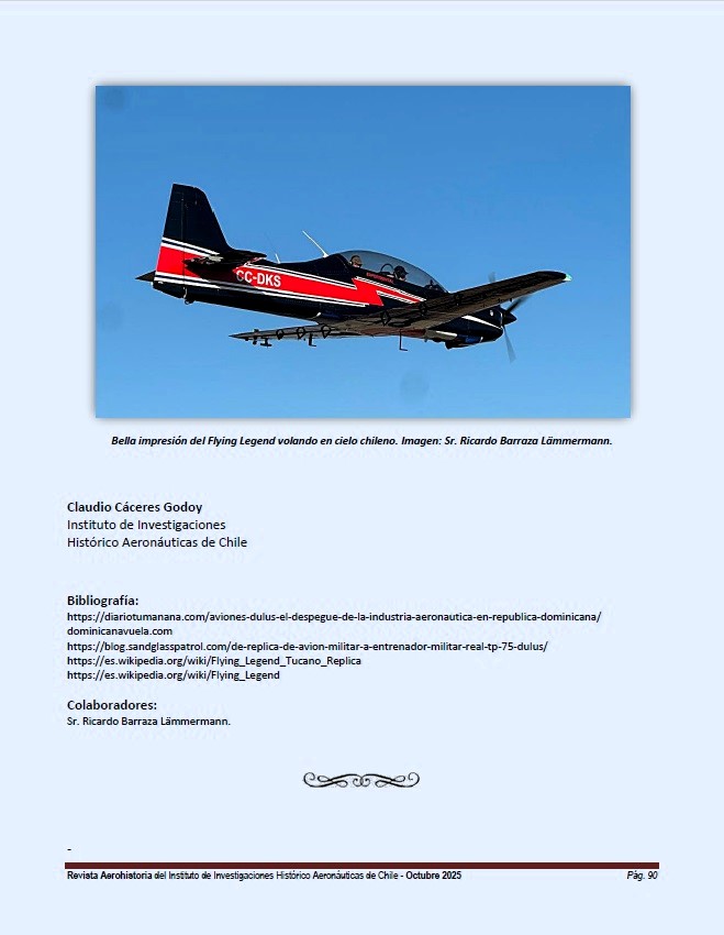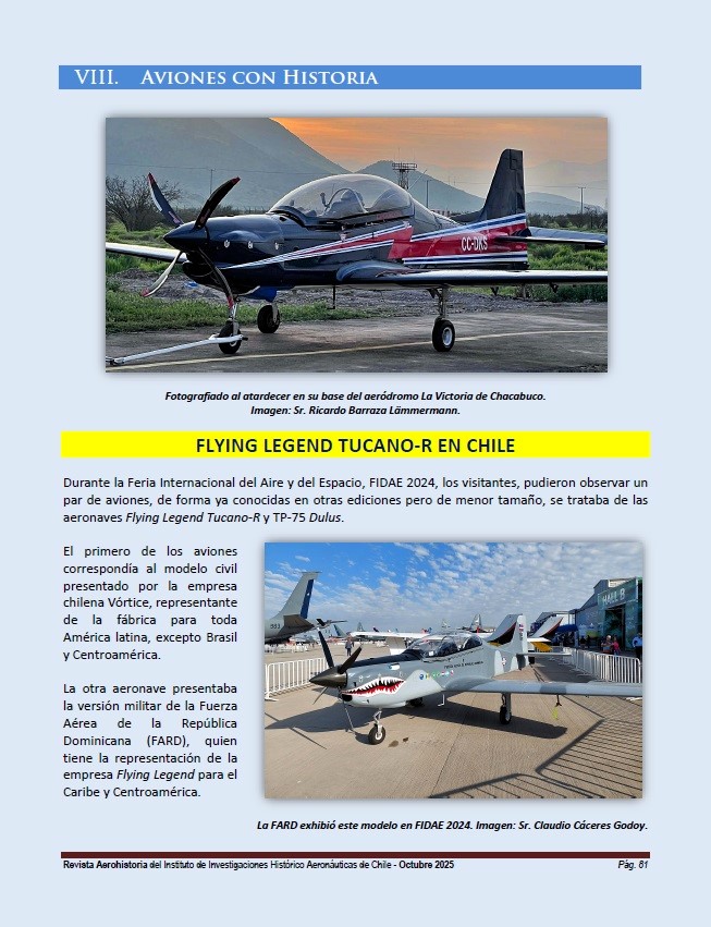During the International Air and Space Fair, FIDAE 2024, visitors were able to observe a pair of airplanes, in shapes already known from previous editions but smaller in size. These were the Flying Legend Tucano-R and TP-75 Dulus aircraft.