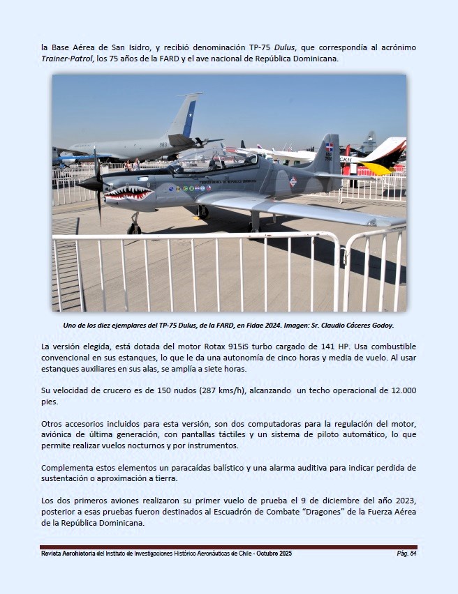 San Isidro Air Base, receiving the designation TP-75 Dulus, corresponding to the acronym Trainer-Patrol, the 75 years of FARD, and the national bird of the Dominican Republic.